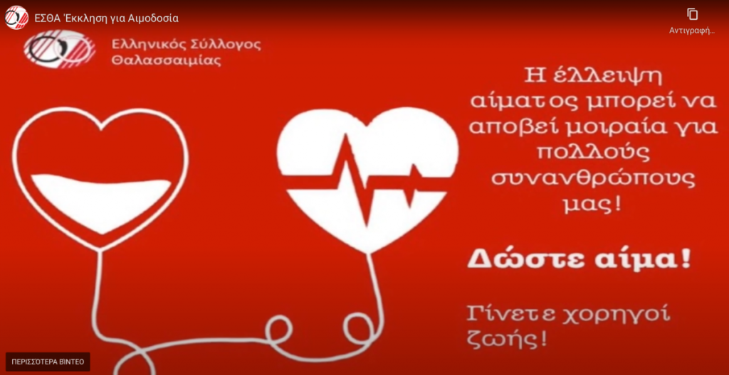 Ελληνικός Σύλλογος Θαλασσαιμίας: Μήνυμα για την αιμοδοσία