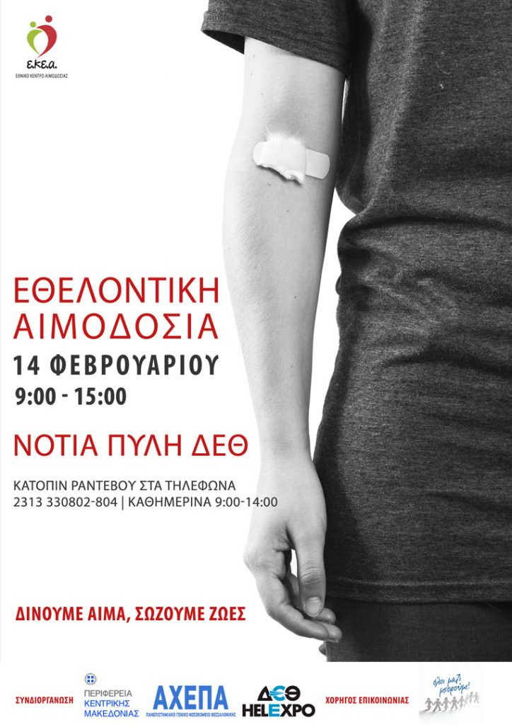 Έκτακτη Εθελοντική Αιμοδοσία στη Θεσσαλονίκη Κυριακή 14 /2 ΔΕΘ