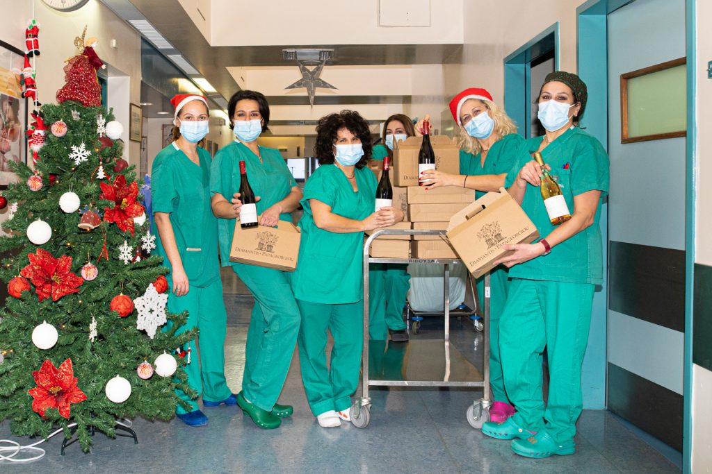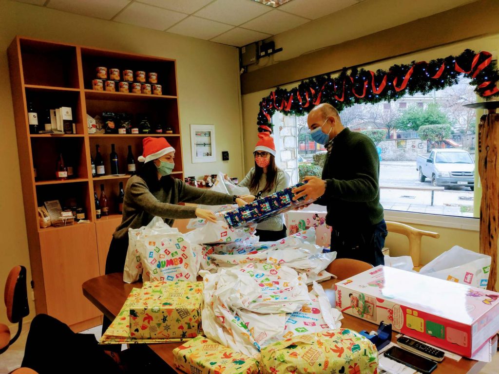 Προσφορά φιαλών κρασιού και ευχών στους εργαζόμενους από το Ίδρυμα Παπαγεωργίου