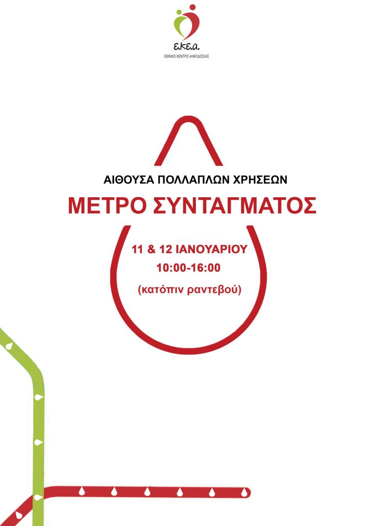 Έκτακτη εθελοντική αιμοδοσία στις 11-12 Ιανουαρίου στο Μετρό Συντάγματος