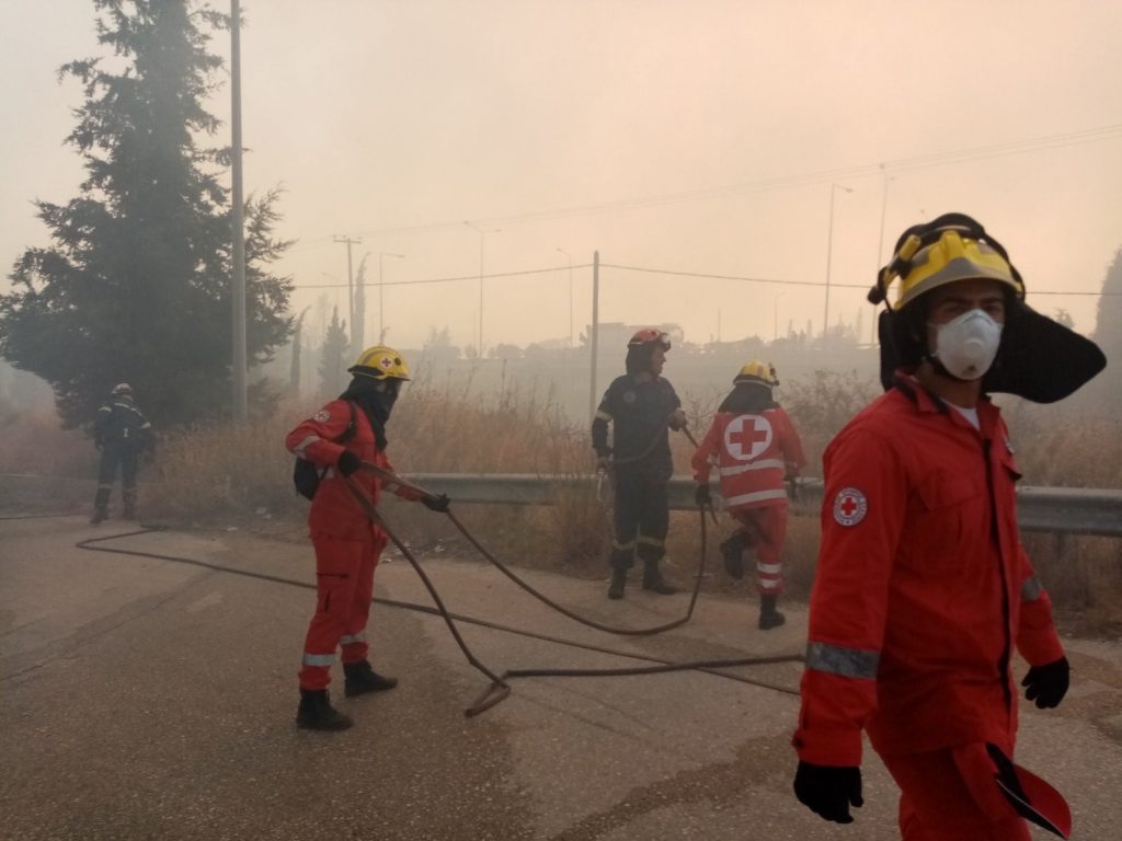 Οι Εθελοντές του Ερυθρού Σταυρού στην πρώτη γραμμή της μάχης με τις φλόγες στα Βίλια