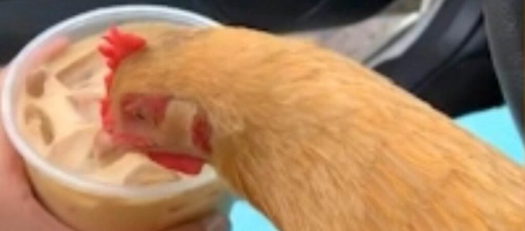 Κότα ήπιε καφέ και τον ευχαριστήθηκε (βίντεο)