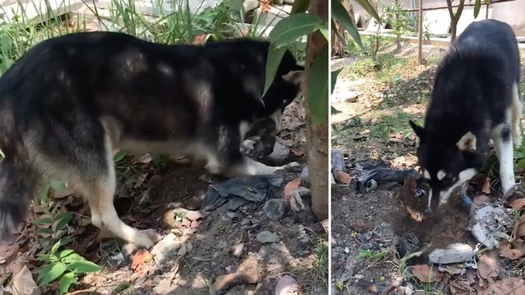 Σκληρές εικόνες: Σκυλίτσα θάβει το νεκρό παιδάκι της (βίντεο)