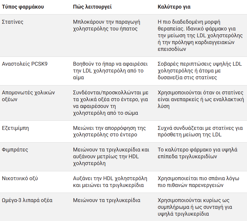 Τύποι φαρμάκων για την μείωση της χοληστερόλης