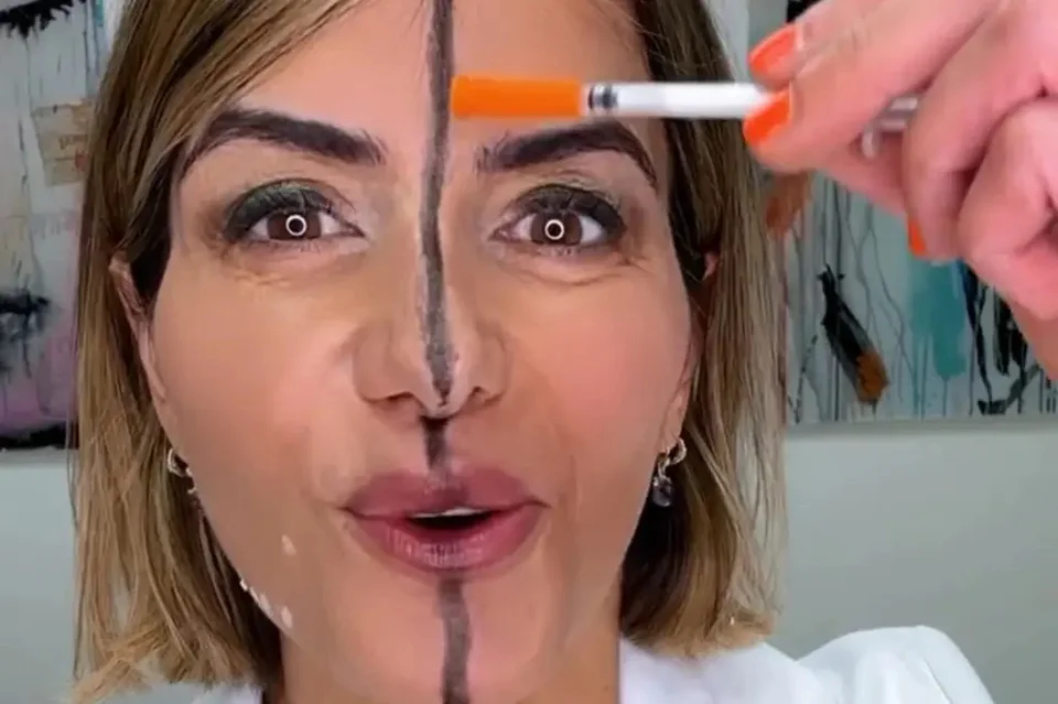 Στο βίντεο που έγινε viral στο Instagram, η Dr. Bita Farrell εξήγησε ότι μετέτρεψε τον εαυτό της σε «πειραματόζωο», χαράσσοντας μια γραμμή στη μέση του προσώπου της και κάνοντας ενέσεις μόνο στη δεξιά πλευρά.