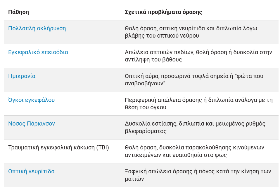 Νευρολογικές καταστάσεις που συνδέονται με προβλήματα όρασης